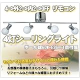4灯シーリングライト ボール球60W-E26 4個付属 (WY-019) ![]() 価格: 12,800円 レビュー評価: レビュー数: 4灯のライトは、それぞれ角度が変えられ間接照明、直接照明が自在に調節できます ライトは4灯→外2灯→内2灯→OFF とリモコンで点灯切替可能! ライトの調光やオン、オフもリモコンで可能! リビング、ダイニング、キッチンから廊下などをお洒落にライティング♪ |